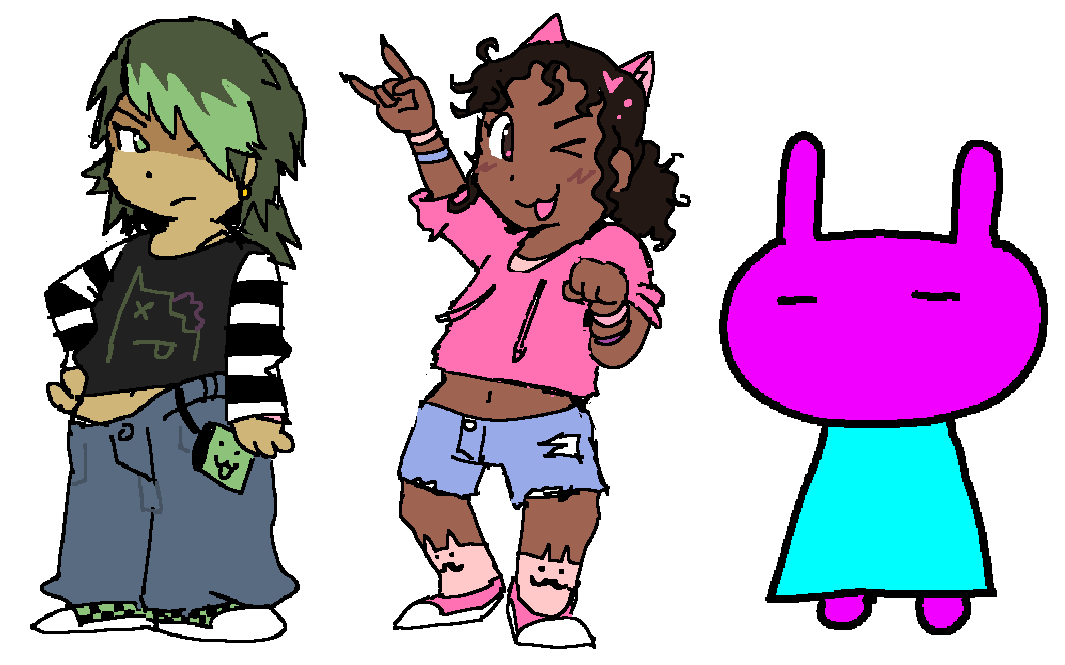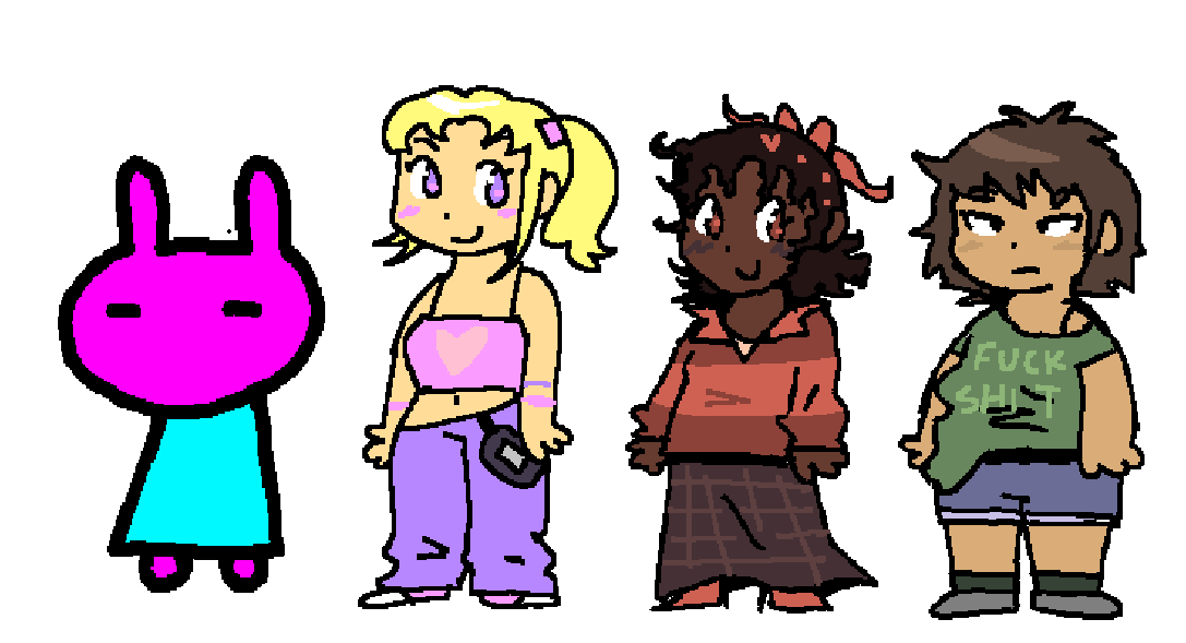 Crude concept drawing from December when I first had the idea that Glitz should hang out with regular human girls